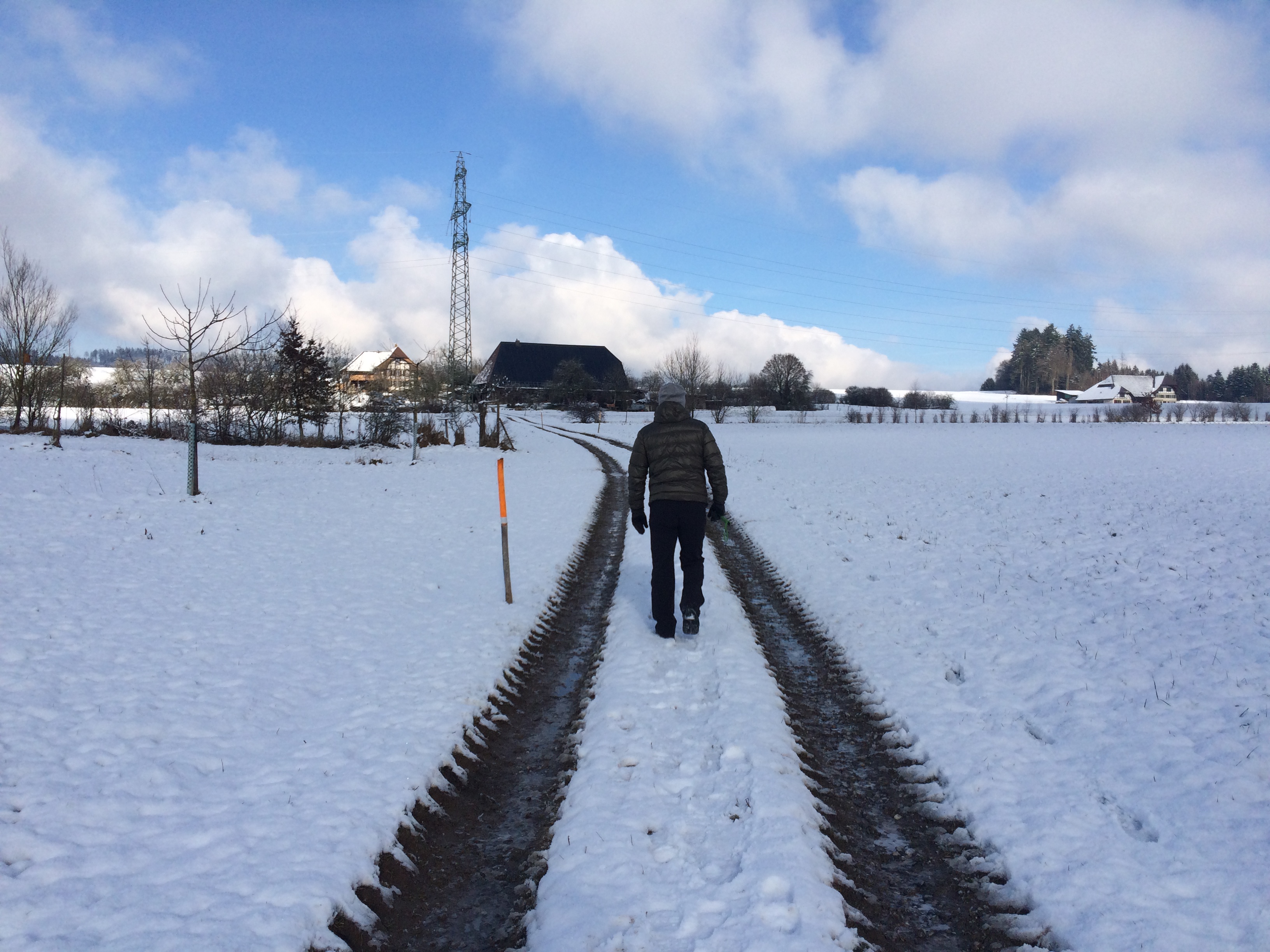 Heading in Published January 18, 2015 at 3264 × 2448 in January 18: Walking to Möriswil ← Previous Next → A tractor had been through here and the frozen tracks were tricky to walk on, so we walked in the middle A tractor had been through here and the frozen tracks were tricky to walk on, so we walked in the middle