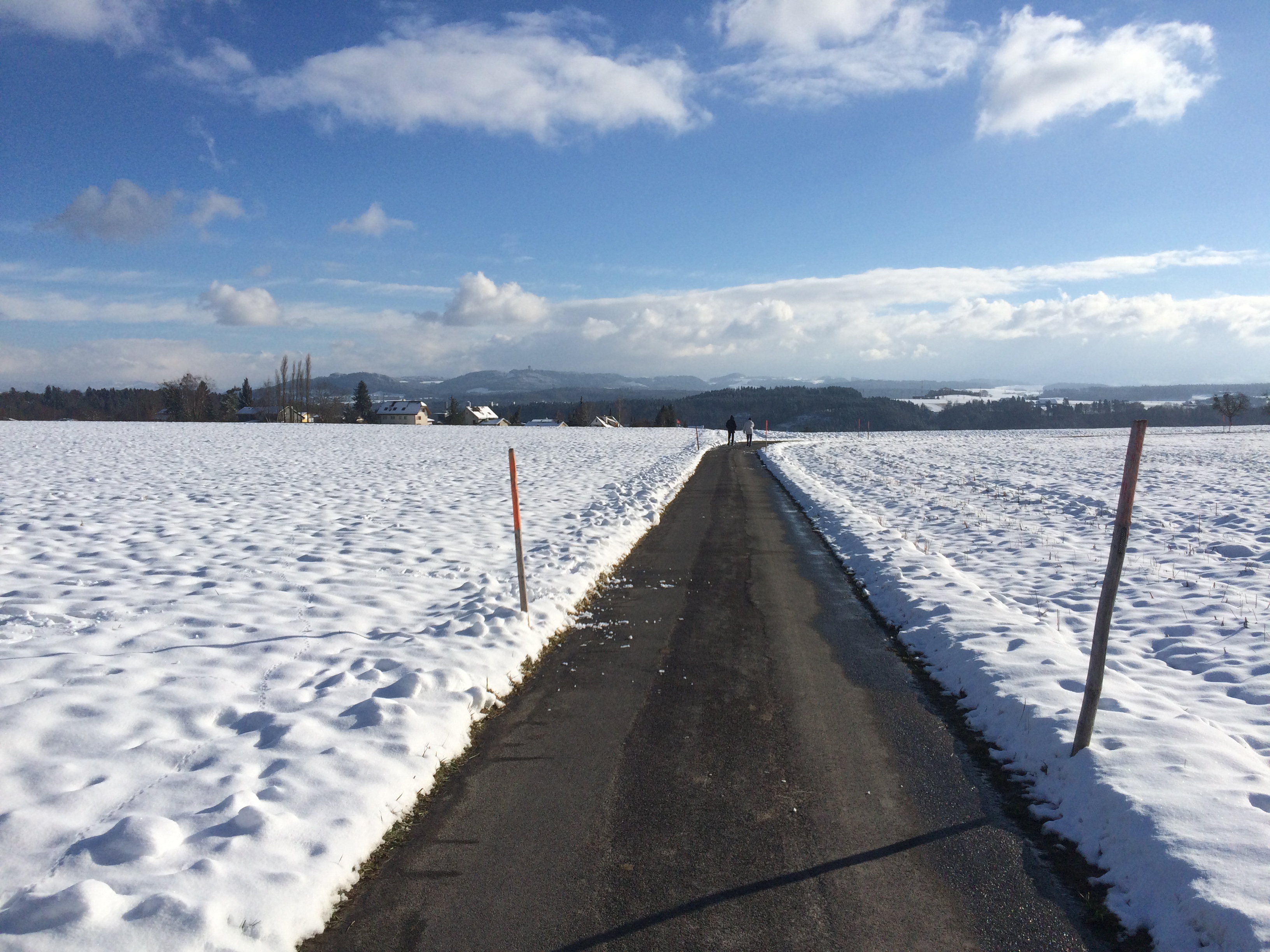 As we walked through the fields to get home, the sun was strong. Wind was too cold to leave our ears exposed, but the warmth on our backs was delicious!