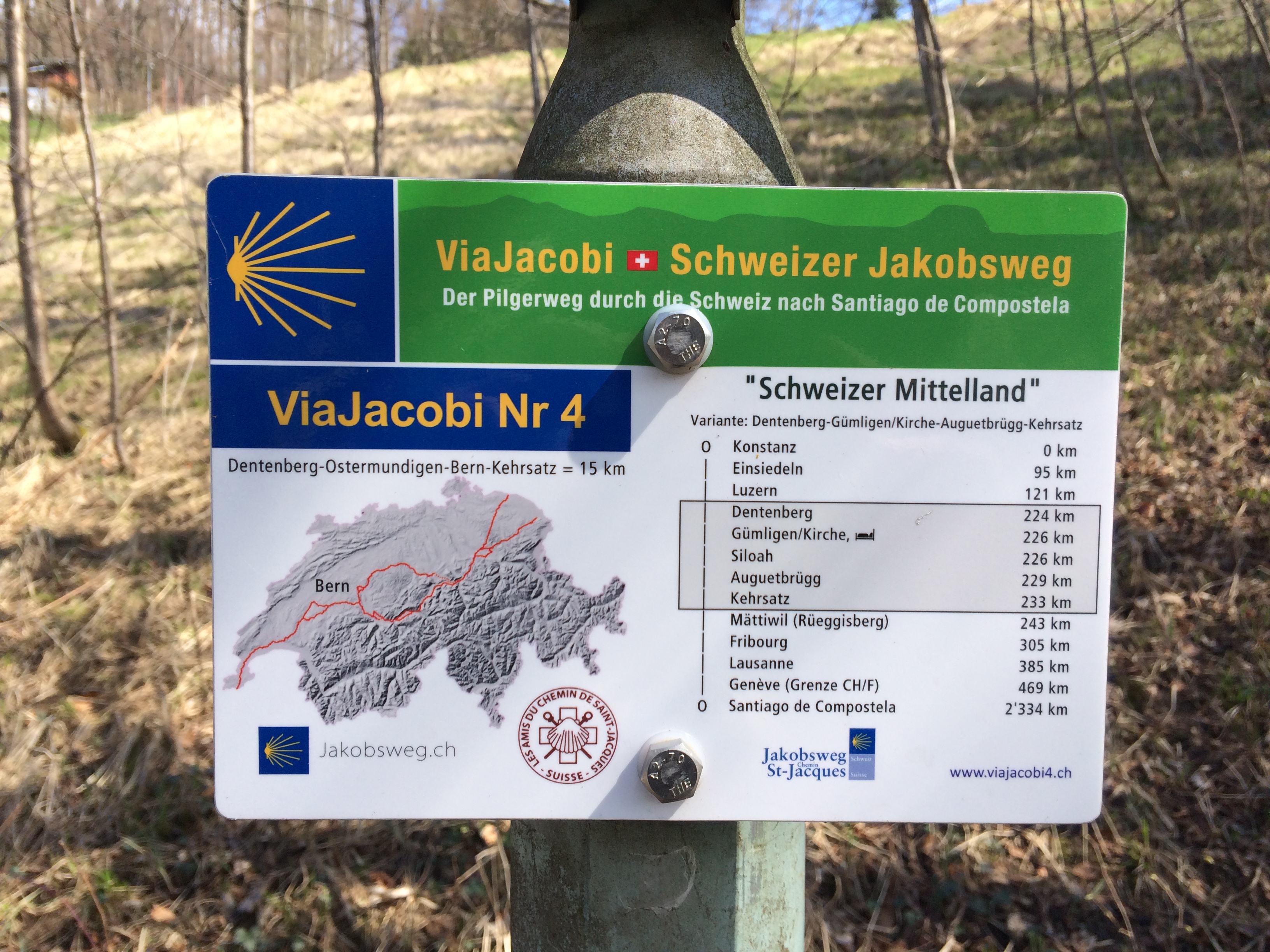 Surprise Published April 6, 2015 at 3264 × 2448 in April 5: Just in time … Easter egg hunt! ← Previous Next → We crossed the bridge (which we weren’t supposed to do) but for me it was a bonus because we walked on the side that is part of the Swiss Camino, or Jakobsweg, which leads to Santiago de Compostela in Spain