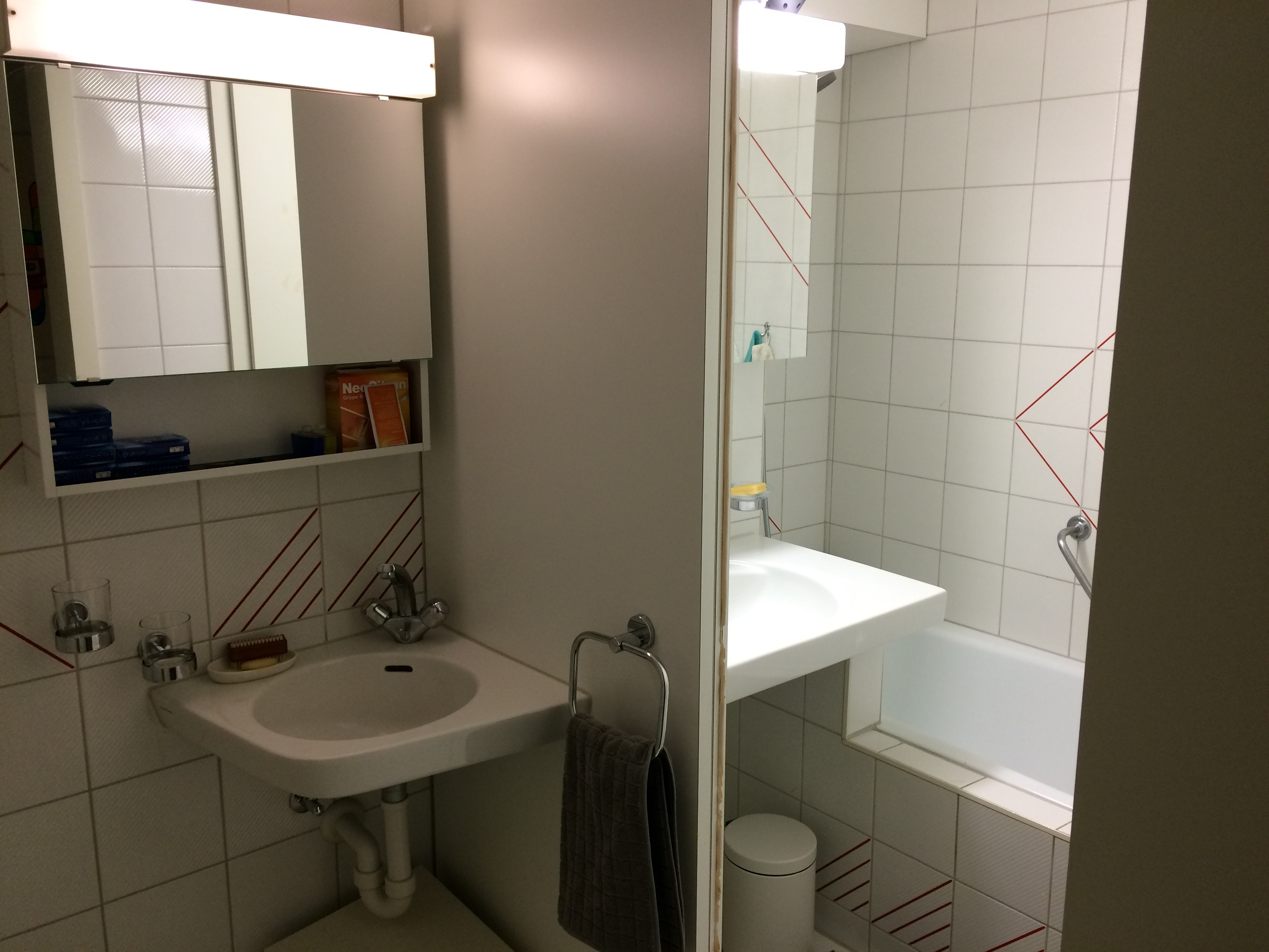 Bathroom 3 Published February 17, 2016 at 3264 × 2448 in The new apartment photo tour ← Previous Next → The divider between the rooms. Cleaning two basins? No problem!