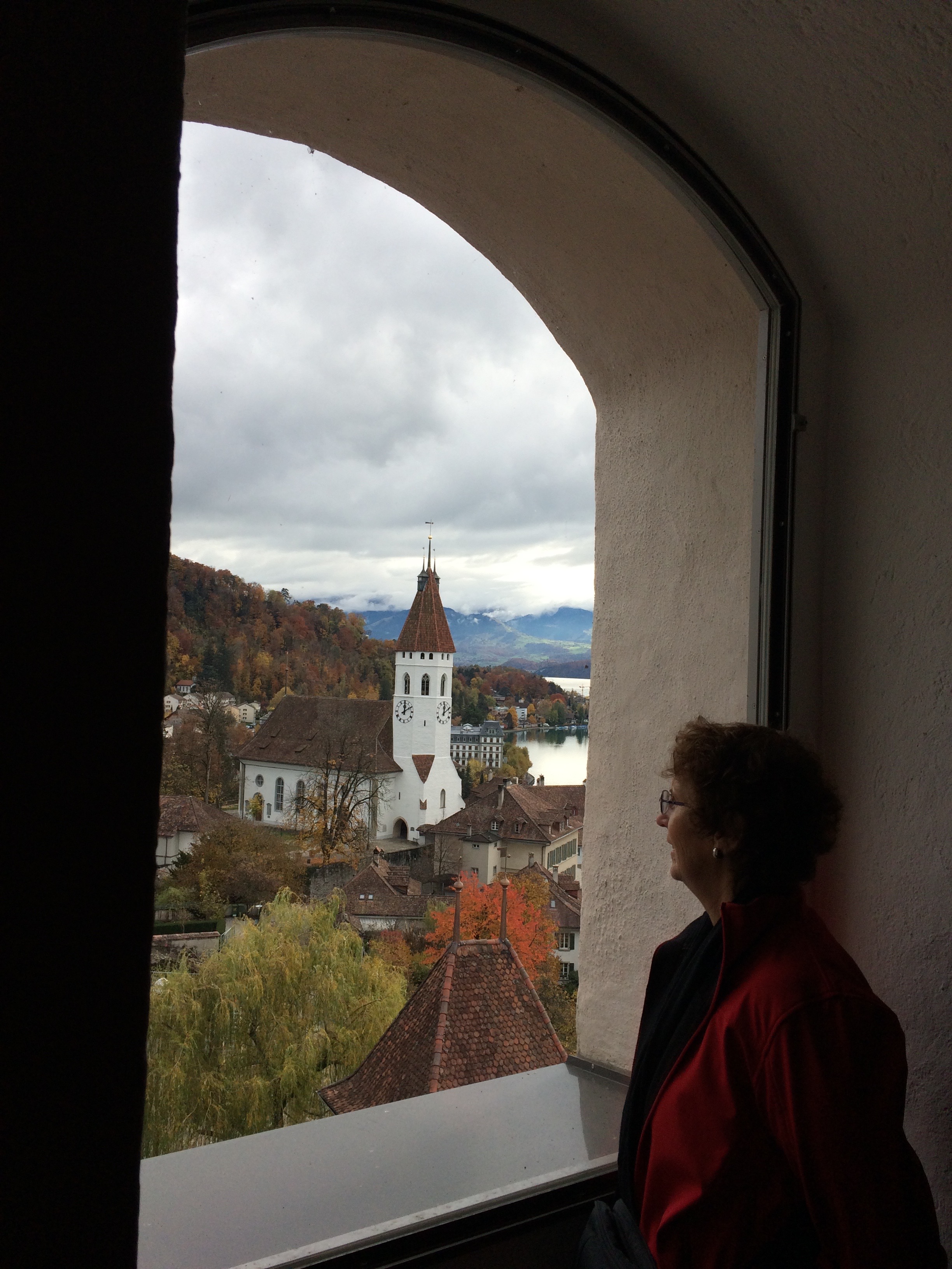 Judy inside one of the turrets at Thun Castle