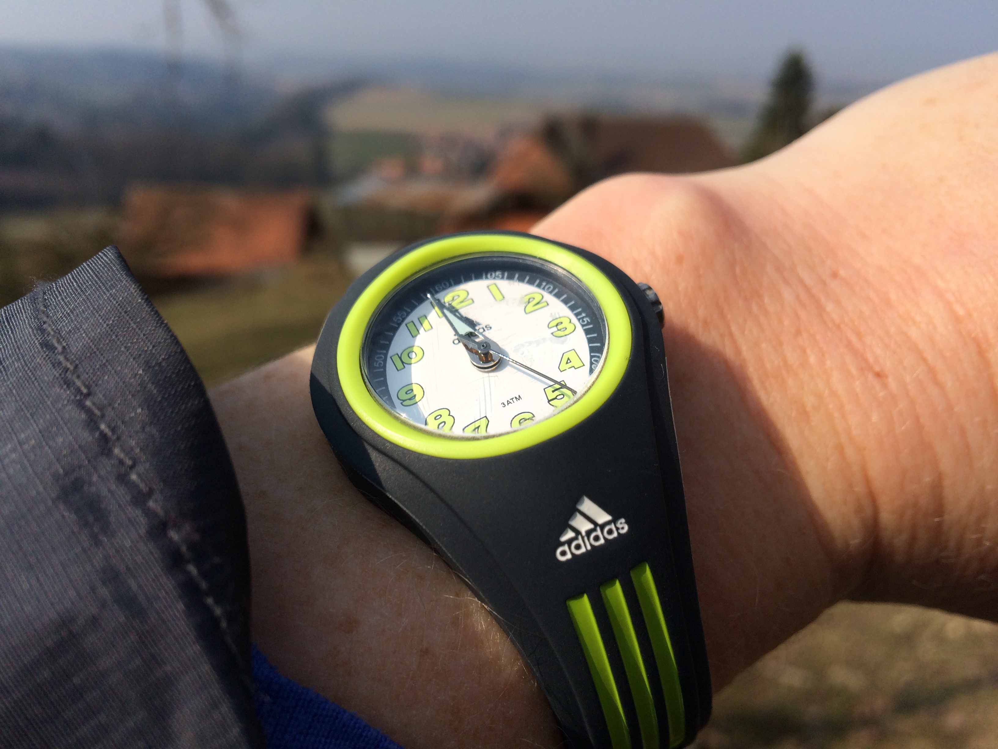 Stop Published March 14, 2015 at 3264 × 2448 But a few seconds later we found another bench and stopped. I had to admire Leo’s Swissness – neither of us had checked the watch and it was bang on midday. Most of the Swiss break for lunch at midday