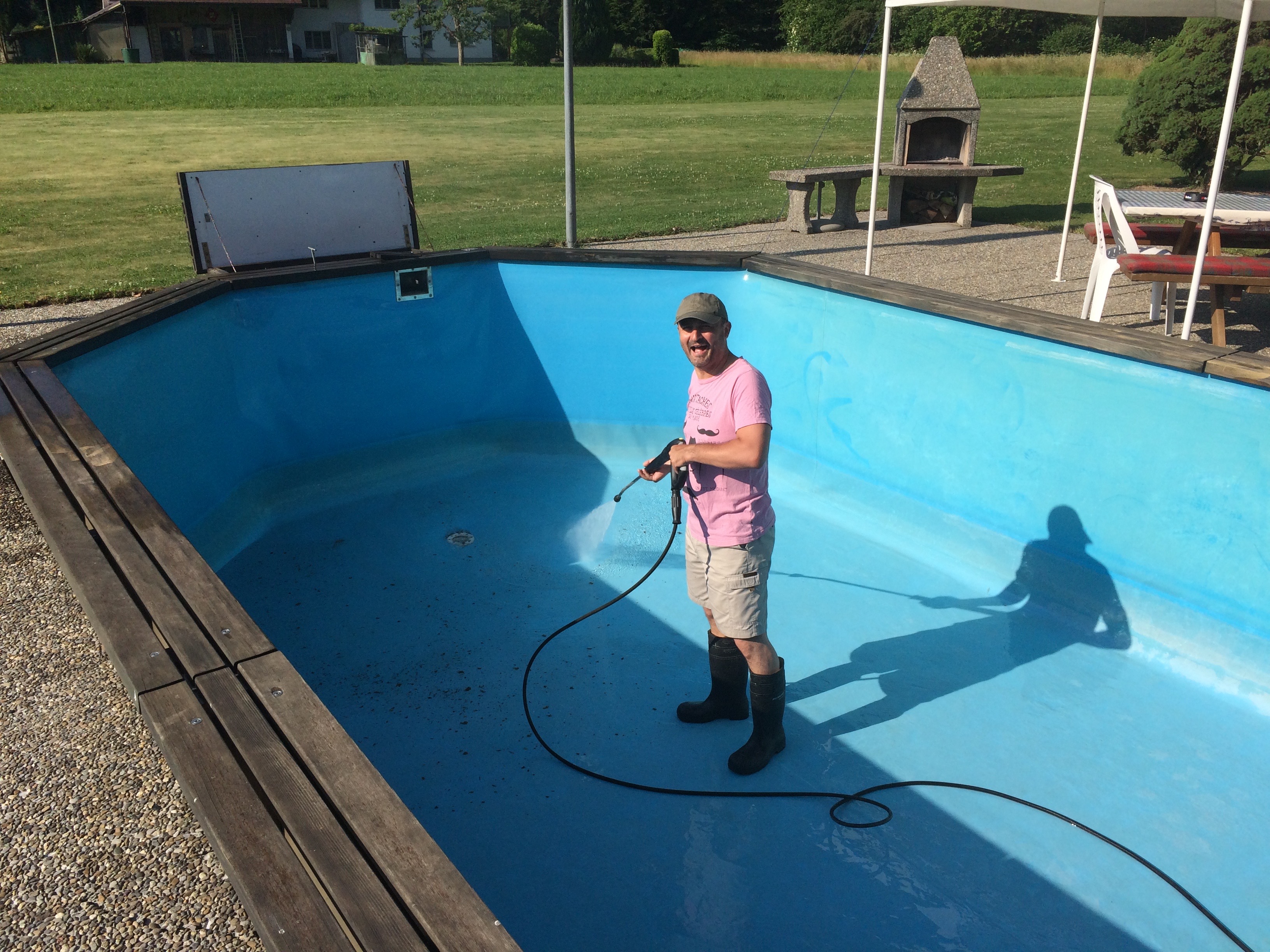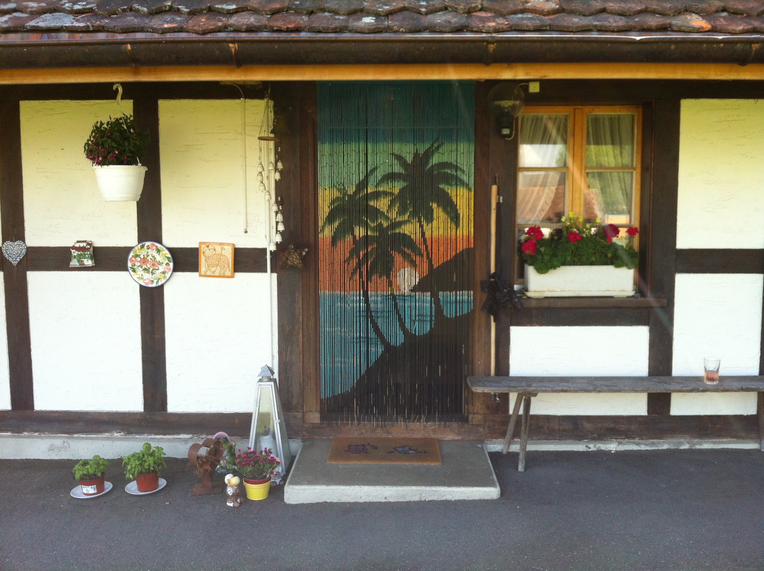 I forgot to say Rene came home from hospital yesterday, in good spirits. He felt fit enough to go into his cellar to retrieve a gift for Leo and I, much to Leo’s disgust! In an effort to tighten the purse strings, I accepted our neighbours’ kind offer of their old door hanger, to keep the flies out and let the breeze in. Now it really feels like summer! Waiter! Where’s my pina colada?!